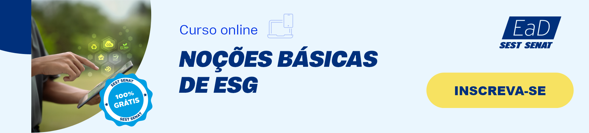 Antes de mais nada, você sabia que as empresas que adotam boas práticas de governança ambiental e social têm mais chances de se destacar no mercado? O curso Noções Básicas de ESG da EaD SEST SENAT oferece uma introdução aos pilares Ambiental, Social e de Governança (ESG) e ensina como aplicar esses conceitos de forma prática dentro das organizações.